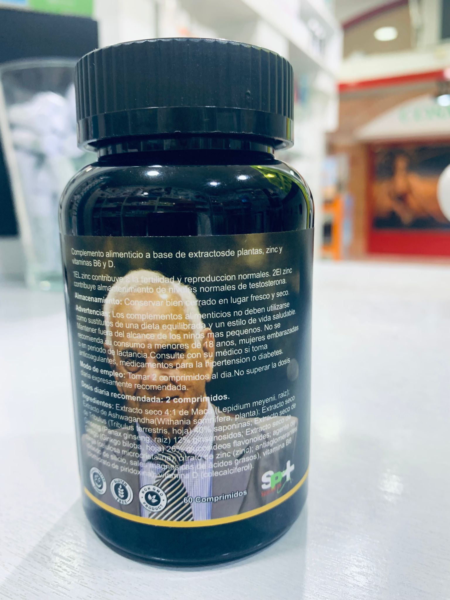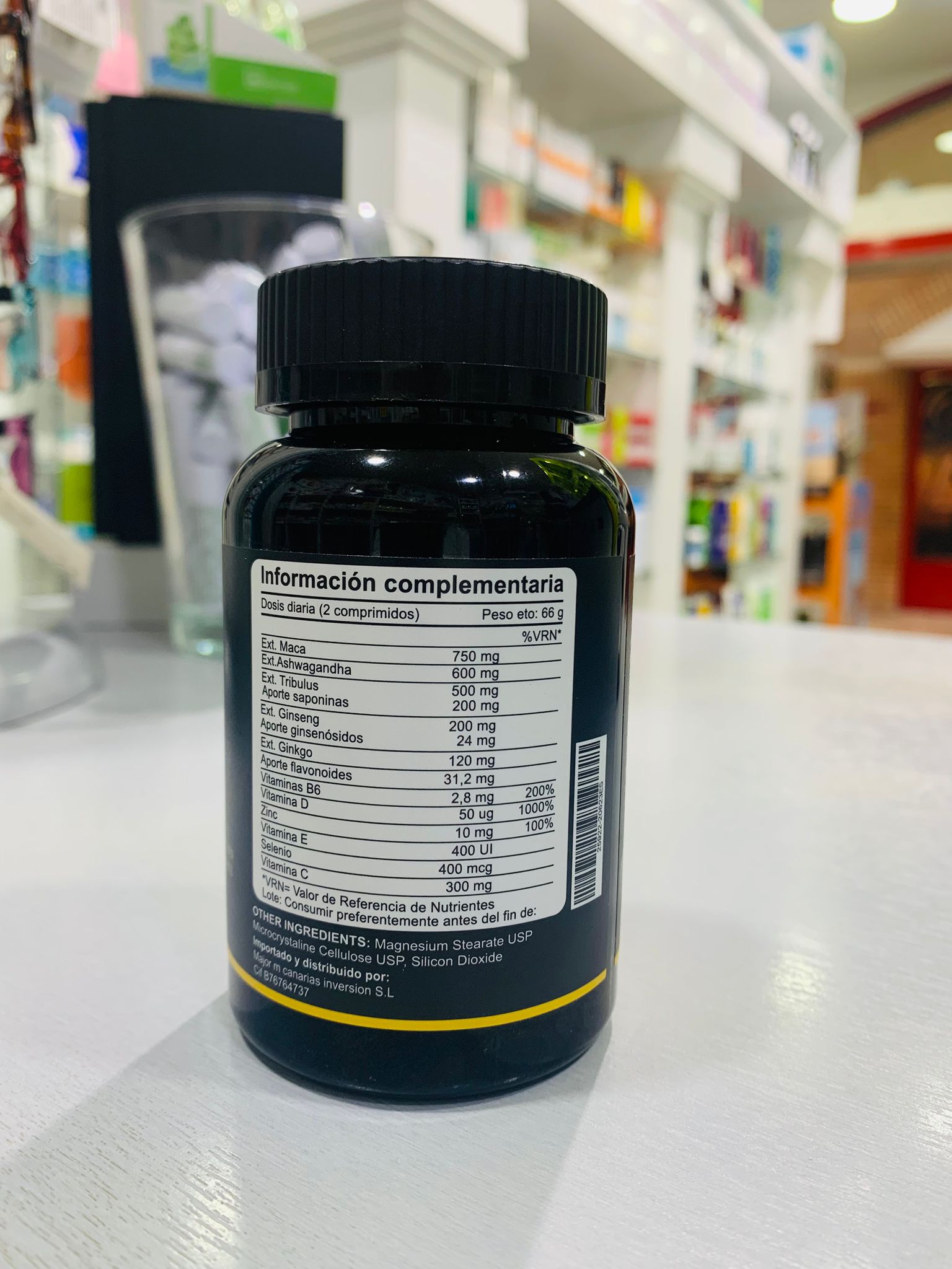 - Natura amazing gift for sexual desire , strength, power, timing and hormone balance male and female and helps to boost testosterone and clear pus cells and much more… Ingredients: Ashwagandha 600mg Tríbulus terrestris e.s. tit 40% 500 mg aporte de saponinas totales 200 mg Maca e.s. 4/1 750 mg Ginseng e.s tit 12% 200 mg aporte ginsenósidos 24,0 mg Ginkgo biloba e,s. tit 26%120 mg aporte glucósidos flavonoides31,2 mg Vitamina B6 2,8 mg 200 Vitamina D 50 pg1000 Zinc 10 mg Selenio 400 mcg Vitamina E 400 UI Vitamina C 300 mg Lepidium meyenii (Peruvian Maca: root extract), bulking agent: microcrystalline cellulose, anti-caking agent: magnesium stearate, zinc oxide, anti-caking agent: silicon dioxide. How to use: Take 1 tablet a day, preferably before breakfast. If necessary, you can take up to 2 tablets a day. Presentation: Container of 60 tablets. Recommendations and warnings: Does not contain: Sugar, starch, lactose or gluten. Non GMO * Food supplements should not be used as substitutes for a varied and balanced diet. Do not exceed the expressly recommended daily dose. Keep out of the reach of little kids. The information contained on our website is for informational purposes and cannot be considered a substitute for medical prescription, diagnosis or treatment. The results of nutritional supplements may vary depending on the person, and the time to obtain the indicated benefits will depend on each case.